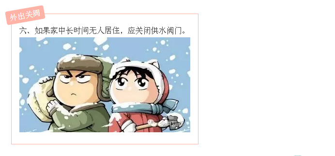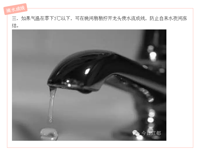 為保證冬季用水正常,現(xiàn)友情提醒廣大用戶及早做好家庭用水設(shè)施防凍保暖工作。