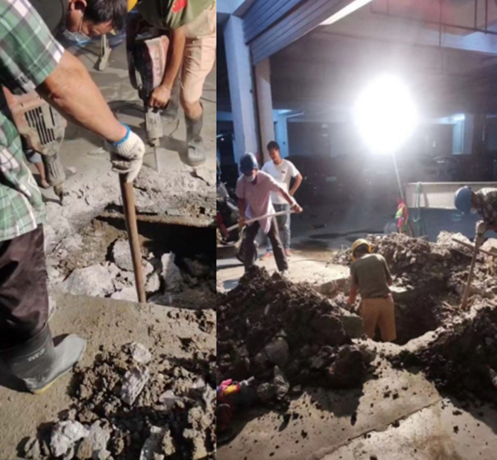8月11日上午8時許,公司得到真武楊莊京滬高速下一處DN800球管漏水消息后,迅速組織人員趕往現(xiàn)場。經(jīng)現(xiàn)場勘查,因挖機施工失誤造成管身破出一個20公分大的洞。為了防止停水造成大范圍群眾和重點單位部門用水受到影響,經(jīng)驗豐富的搶修人員對此迅速做出搶修方案:關閉泵站增壓泵,低壓供水,用其木棍堵住部分余水,便于人員入坑打抱箍。經(jīng)過4個多小時艱苦奮斗,于下午13點30分,供水恢復正常。