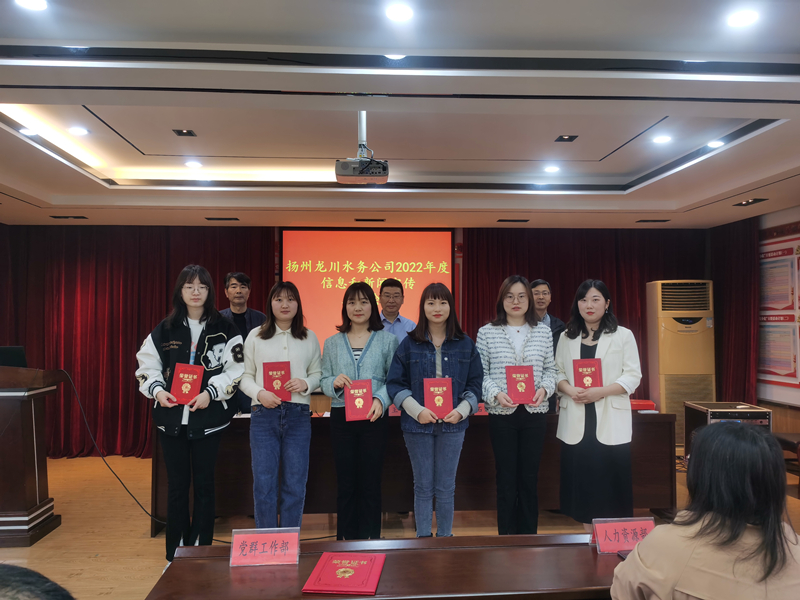 緊接著,對照公司宣傳報道考核辦法,會議通報了2021年度相關(guān)考核和獎勵兌現(xiàn)統(tǒng)計結(jié)果。根據(jù)部門及個人年度積分情況,授予黨群工作部、綜合管理部、龍泉建設(shè)工程公司、自來水公司“宣傳工作先進集體”榮譽;授予王麗君、季藝、邵先知、顧晨、高丹婷、張麗“優(yōu)秀信息員”榮譽;另外,《源源凈水潤萬家——揚州龍川水務(wù)公司隆重舉行慶祝建黨一百周年——第二自來水廠深度處理工程運行通水儀式》、《踐行社會責(zé)任 彰顯國企擔(dān)當(dāng)》等六篇稿件入選“優(yōu)秀信息”,與會領(lǐng)導(dǎo)向獲獎單位和個人頒發(fā)了榮譽證書及稿酬。