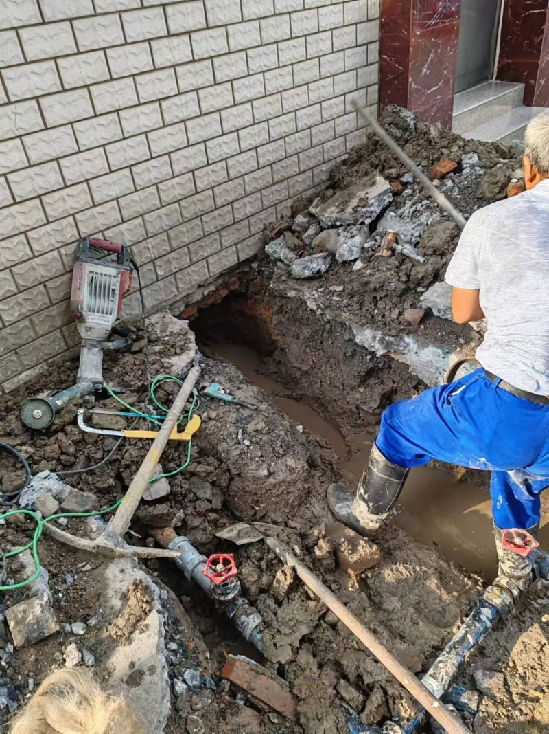 近期玉帶公寓用戶反映21幢、22幢高層無(wú)水可用,接到用戶報(bào)修后,自來(lái)水公司管網(wǎng)辦副主任王曉靜同志與龍泉建設(shè)工程公司維修部主任李兆軍同志帶領(lǐng)維修人員,第一時(shí)間趕到現(xiàn)場(chǎng),為居民解決用水問(wèn)題,經(jīng)現(xiàn)場(chǎng)查勘發(fā)現(xiàn):玉帶公寓(前身為公檢法大院)內(nèi)部供水管道多年前安裝,自來(lái)水管道布局較為復(fù)雜,漏點(diǎn)又在房屋內(nèi)部,維修難度較大。維修人員利用尋管儀巡查,在巡查過(guò)程中因干擾太多無(wú)法確定漏點(diǎn)上游管道,后經(jīng)管網(wǎng)辦與龍泉公司工作人員現(xiàn)場(chǎng)拿方案,最終決定采取在墻體外側(cè)開挖,切除管道的辦法對(duì)漏點(diǎn)進(jìn)行維修。