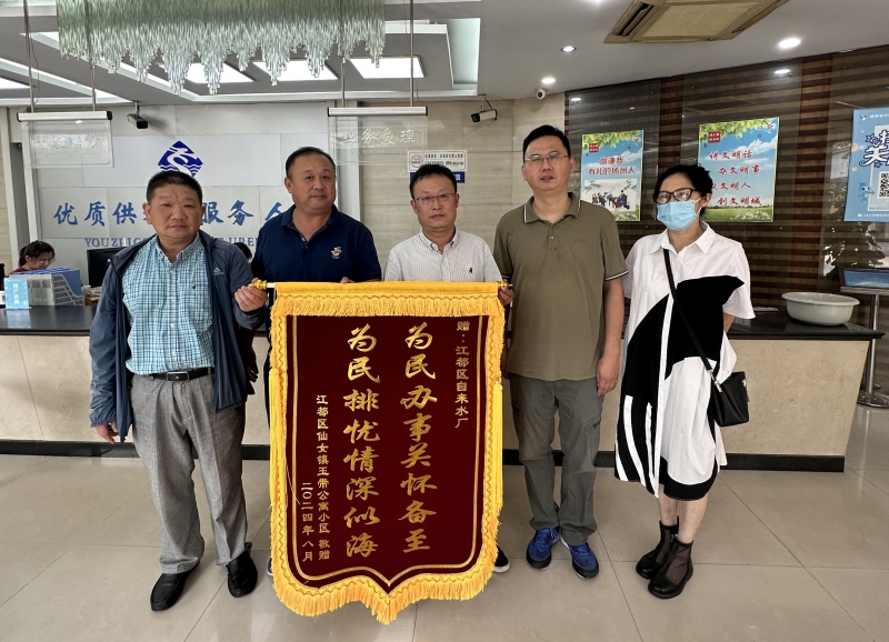 8月26日,揚(yáng)州市江都區(qū)自來(lái)水有限公司收到一面繡有“為民辦事關(guān)懷備至,為民排憂情深似海”的錦旗。“沒(méi)想到自來(lái)水管道這么快就修好了,真的是感謝你們,為你們高效、優(yōu)質(zhì)、熱情的服務(wù)點(diǎn)贊!”江都區(qū)仙女鎮(zhèn)玉帶公寓小區(qū)的居民激動(dòng)地說(shuō)道。